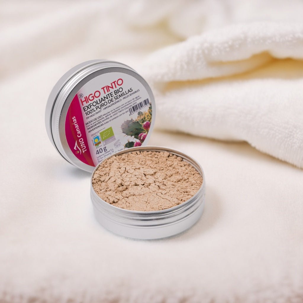 El Exfoliante de Semillas de HIGO TINTO® Canario es 100% natural y está hecho de semillas de HIGO TINTO® recolectadas en los paisajes volcánicos de Canarias. A diferencia de otros exfoliantes comerciales que contienen químicos y microplásticos, este exfoliante es completamente BIO, vegano y libre de crueldad, proporcionando una exfoliación eficaz sin dañar tu piel ni el medio ambiente.
